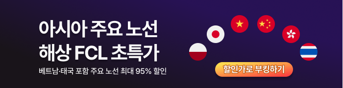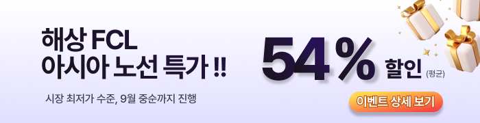 시장 최저가 운임을 기간 한정(~9/19, 선적일 기준)으로 제공합니다. 회원 전용 특가로 부킹까지 완료하고, 풍성한 사은 혜택까지 받아가세요🎁