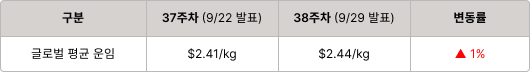 - 한국 ▶ 유럽 : 연휴 전 밀어내기 수요 기대 대비 약세. 4분기 성수기 앞두고 항공사들은 계약 운임 방어 기조